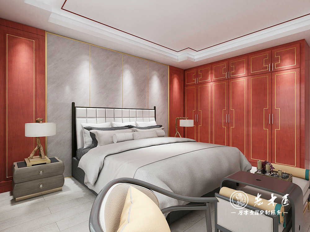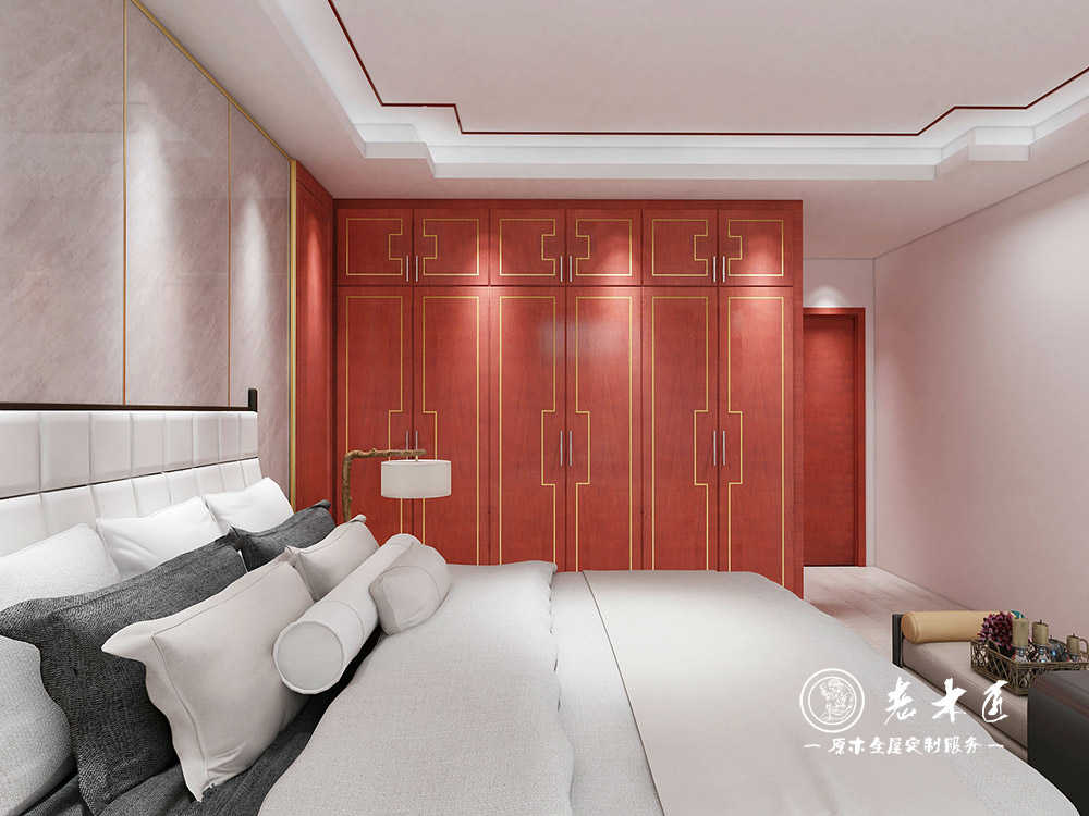 產(chǎn)品介紹:老木匠整體家居定制,提供新中式臥室床頭背景墻效果圖,背景墻定制倡導(dǎo)綠色環(huán)保觀念,采用蜂蠟工藝,臥室背景墻裝修,提供全套設(shè)計(jì)方案,更多新中式臥室實(shí)木定制效果圖-熱線13859205278.